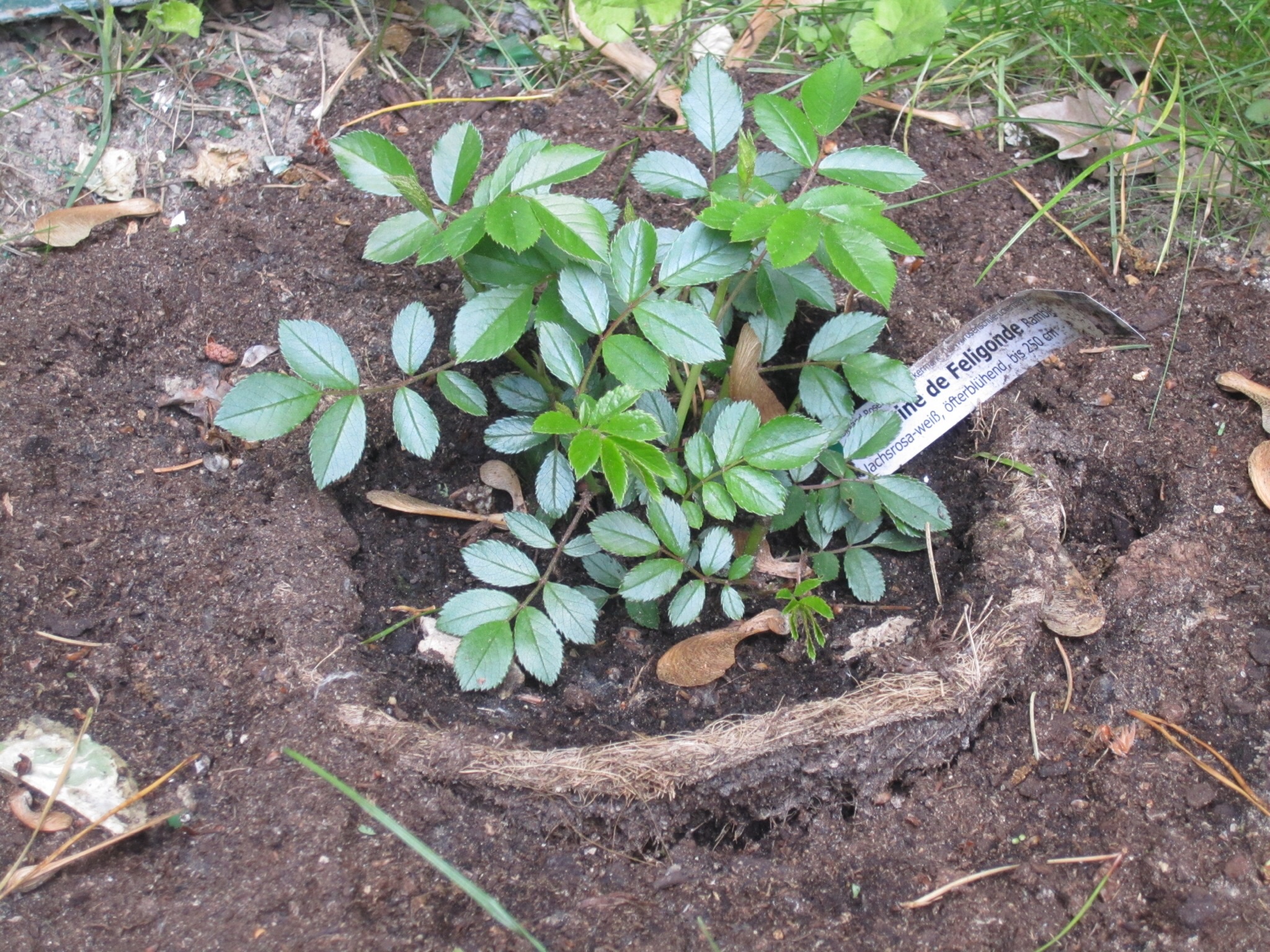 Noch ist sie ganz klein, soll aber in diesem Jahr noch einiges an Wachstum schaffen. Sie ist eine Bio-Rose aus der Bioland Rosenschule Uckermark.
